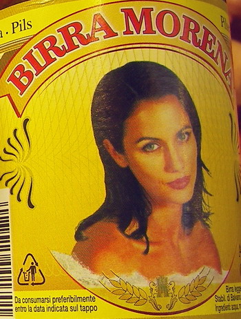 Ik besluit om een biertje te proberen: “Birra Morena”. Op het etiket kijkt een bevallige dame me aan.