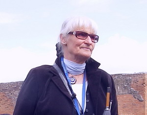 Plots staat midden in Pompeii Margaret met haar camera voor me.