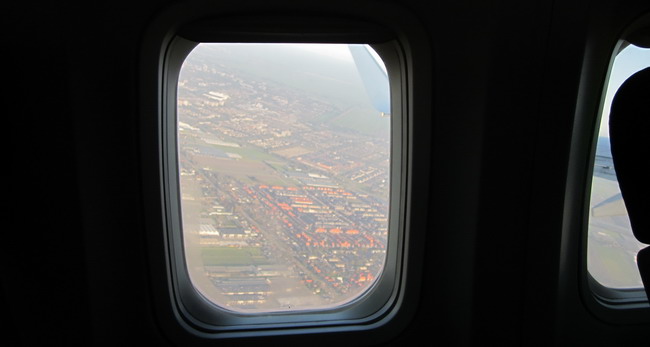 16.45 uur : Het vliegtuig staat klaar op de startbaan, begint te brullen en daar gaan we ... de lucht in. Zonder problemen