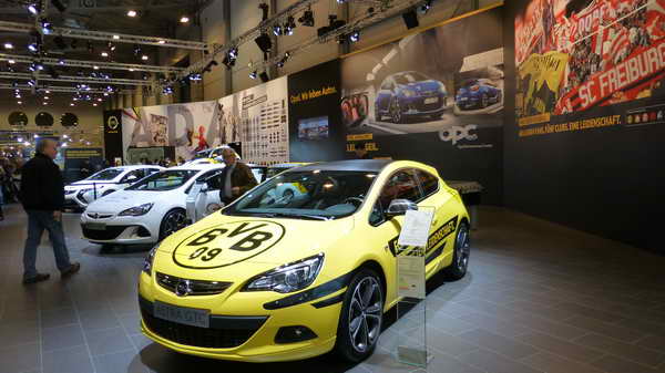 Onze belangstelling gaat bij binnenkomst vooral uit naar de Opel Astra GTC,