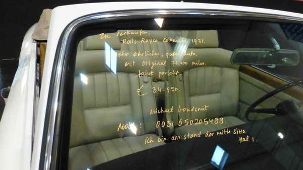 Bij deze Rolls Roys staat een boodschap op de voorruit ...
