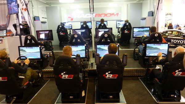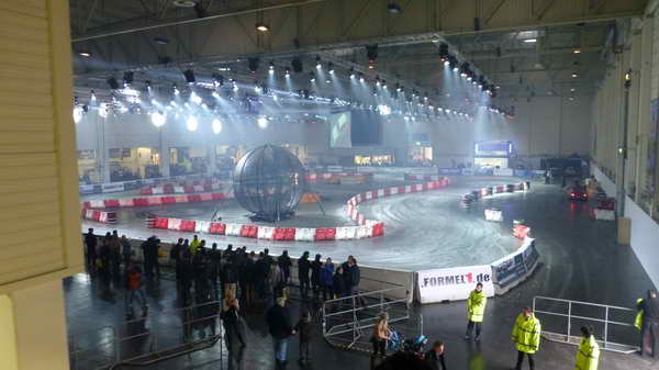 In hal 7 rijden racewagens rondjes met piepende banden.