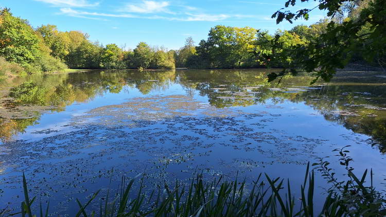 gelukkig bereiken we al vlug het bosgebied met poelen.