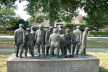 standbeeld van een groepje boeren, die aan de handel zijn. Het