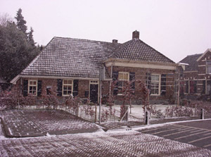 dinsdag 2 mei 2006 Het is mei-vakantie, we verblijven enkele dagen in een hotel te Ruurlo midden in de Achterhoek. We pakken de draad weer op en gaan verder waar we 2 maart (precies 2 maanden geleden dus) gestrand waren. Door de aanreis en wat problemen met het openbaar vervoer, zijn we pas om 1 uur op de plek waar we van start willen gaan. Onze startplek is het Ned. Hervormd Kerkje in Laren, het kerkje waar we op 1 maart in een sneeuwstorm terecht kwamen. Tegenover dit kerkje staat een leuk huisje: een vergelijking!
