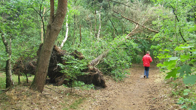 Ook in deze bossen zijn de gevolgen van de januari-storm nog goed te zien.