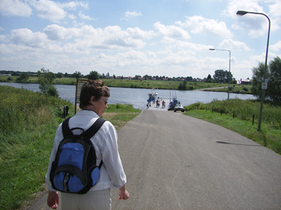 Het Pieterpad 28e etappe dinsdag 17 juli 2007 Met de auto naar Tegelen, daar de bus genomen en via het station in Venlo naar Grubbenvorst. Vandaag duurt de busreis net zo lang als de autoreis! In Grubbenvorst lopen we via de Dorpsstraat naar de Maas, waar het veerpontje op ons ligt te wachten. Het overzetten kost 60 eurocent.