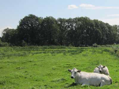 onze wenken bediend, dacht ik. Daar liggen twee witte koeien in de wei.