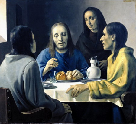 en ontwierp zelf een schilderij in de stijl van Vermeer: de Emmaüsgangers.