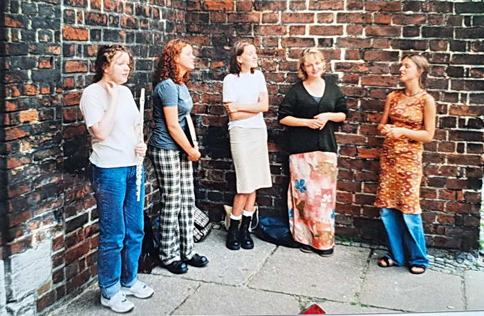 Buiten de kerk bij de ingang stond dit zangkoortje.