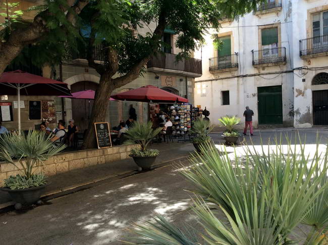 we Tarragona, links een schaduwrijk terrasj en rechts een