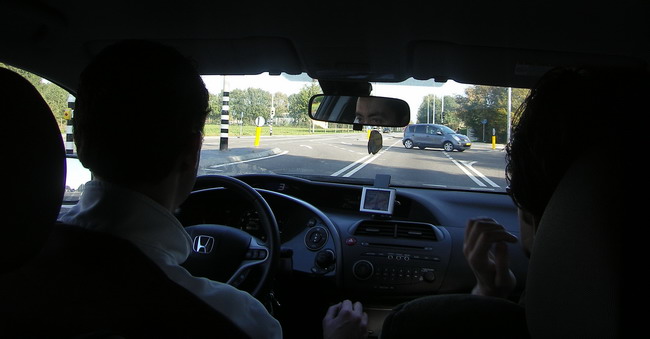 4 grote koffers. Over de A2 naar Utrecht (12.43), daarna de afslag naar de