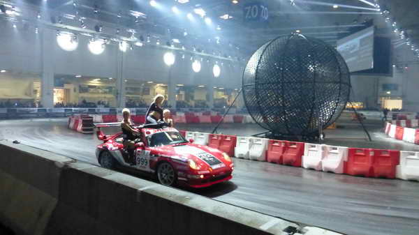 In hal 7 rijden racewagens rondjes met piepende banden.