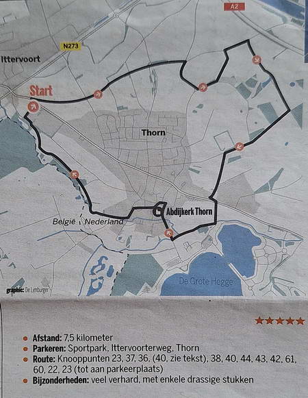waarbij de kerktoren van Thorn steeds in zicht bleef als een vertrouwd baken.