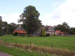 donderdag 4 augustus 2005 Onze laatste dag van deze wandelvakantie en tevens onze laatste wandeldag in Drenthe, want vandaag zullen we Overijssel bereiken. Om 11 uur 's morgens parkeren we onze auto bij het station van Coevorden en gaan vol goede moed op weg. Via een buitenwijk verlaten we deze stad en al gauw kloppen de markeringen niet met de aanwijzingen in het boekje. Achter ons loopt een vader met 2 zonen en zij hebben hetzelfde probleem. We staan net op het punt om te keren en terug te lopen tot we een boer zien zwaaien en roepen. Bij hem aangekomen krijgen we te horen dat we waarschijnlijk een "oud" boekje hebben en dat de route is aangepast: dus weer een omleiding. We hoeven gelukkig niet terug. De nieuwe route leidt ons langs een drukke weg, maar wel passeren we hier een groot bord, waarop staat dat we welkom zijn in Overijssel. Fijn, dank je wel! We menen ook al meteen te kunnen waarnemen dat het landschap verandert, meer weilanden en open vlakten. Je kunt weer ver kijken.
