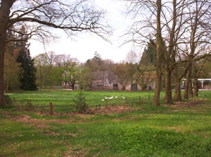 dinsdag 2 mei 2006 Het is mei-vakantie, we verblijven enkele dagen in een hotel te Ruurlo midden in de Achterhoek. We pakken de draad weer op en gaan verder waar we 2 maart (precies 2 maanden geleden dus) gestrand waren. Door de aanreis en wat problemen met het openbaar vervoer, zijn we pas om 1 uur op de plek waar we van start willen gaan. Onze startplek is het Ned. Hervormd Kerkje in Laren, het kerkje waar we op 1 maart in een sneeuwstorm terecht kwamen. Tegenover dit kerkje staat een leuk huisje: een vergelijking!