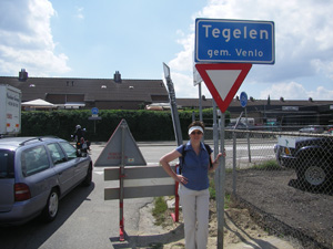 Het Pieterpad 28e etappe dinsdag 17 juli 2007 Met de auto naar Tegelen, daar de bus genomen en via het station in Venlo naar Grubbenvorst. Vandaag duurt de busreis net zo lang als de autoreis! In Grubbenvorst lopen we via de Dorpsstraat naar de Maas, waar het veerpontje op ons ligt te wachten. Het overzetten kost 60 eurocent.