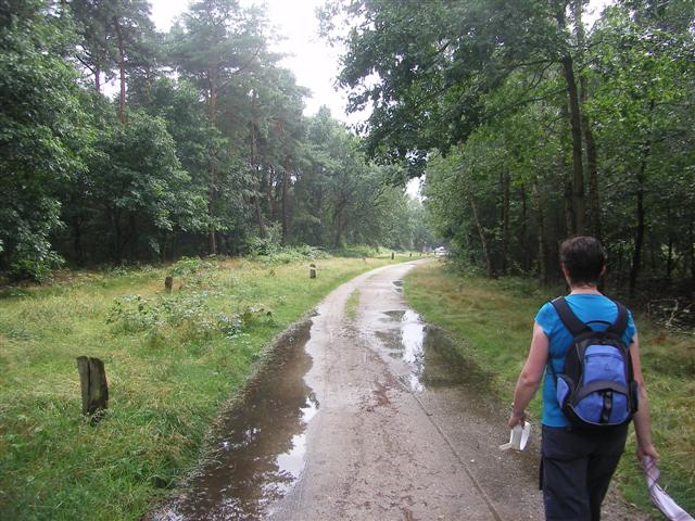 Het regent niet meer, maar we zijn kletsnat en lopen weer. Of het door het vochtige weer komt, maar we worden aangevallen door steekvliegen (ik noem ze dazen) en al wapperend met een zakdoek moeten we steeds om ons heen blijven meppen om ze te verjagen.