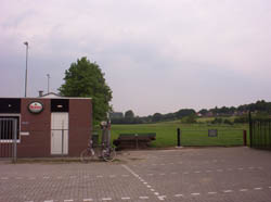 weer geparkeerd bij het voetbalterrein aan de achterkant van de