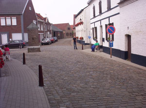 pleintje bij de kerk. Hier zitten de mensen nog aan de gevel van hun huis en