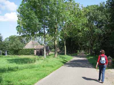wegleidt van het autoverkeer. Op de hoek van deze twee wegen valt ons