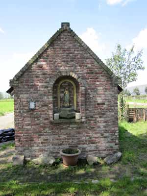 In de voorgevel is een nis met een armetierig Mariabeeldje. Opzij van de