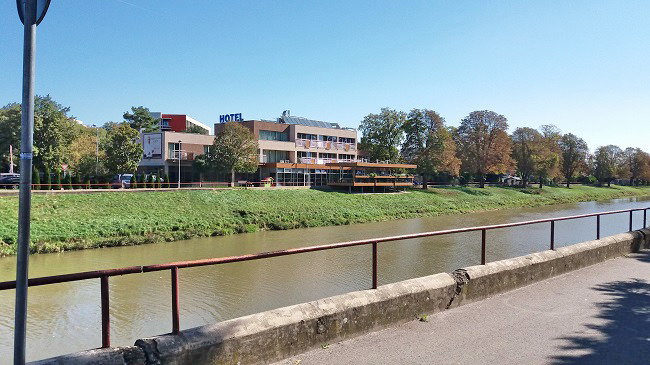 Daarna checken we in bij Hotel River, gelegen aan de rivier die midden door Nitra stroomt.