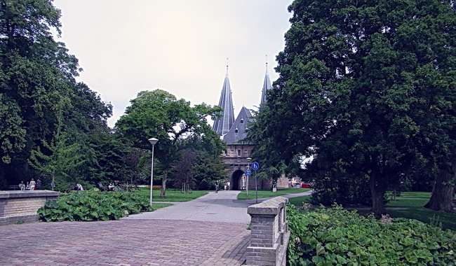De poort geeft toegang tot dit park. We steken de Singelgracht over en lopen over de Broedersingel naar de volgende poort,