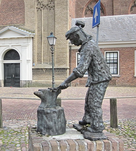 Bij de Nicolaaskerk (gesloten) staat een standbeeldje van een smid.