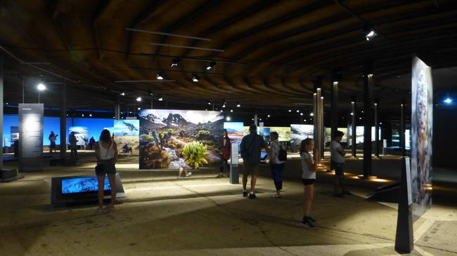 Bij elke foto staat een zuil met informatie.