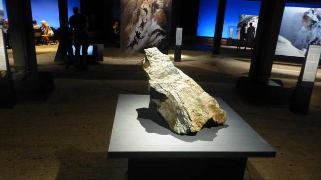 Der Stein, der vor ihnen liegt - und den Sie berühre können - ist ein Gesteinsbrocken vom Gipfel des Matterhorns.