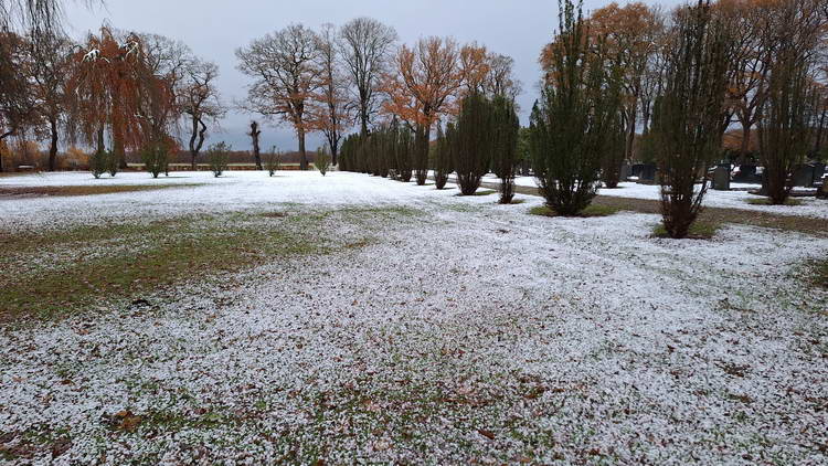 Enigszins luguber om op een begraafplaats af te sluiten.