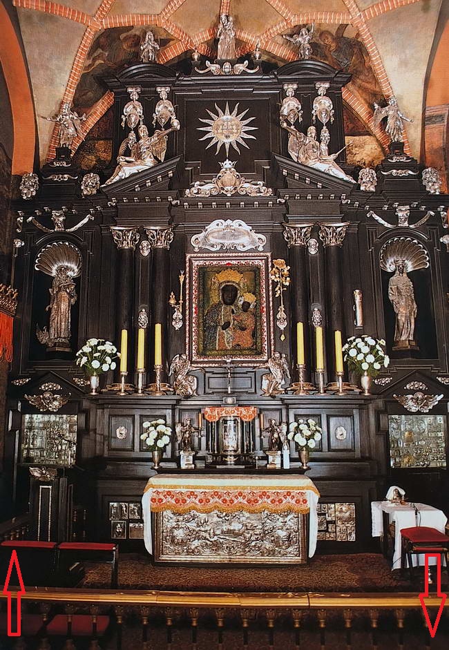 De Zwarte Madonna hangt in een kapel links van de kerk (op