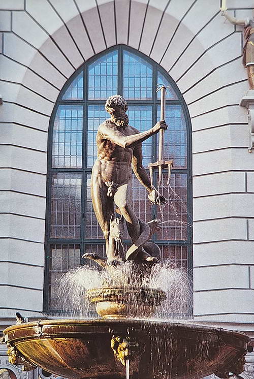Vlak voor het raadhuis staat en fontijn van Neptunus. Dit