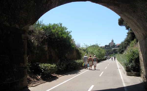 zonnetje over de voormalige spoorlijn terug naar San Remo.