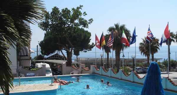 zwembad van het hotel. Een duik in het zeewater zit er om