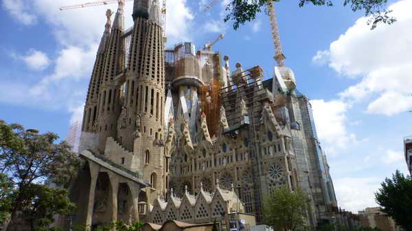 Veel bouwkranen en stellages bedekken de halve kerk,