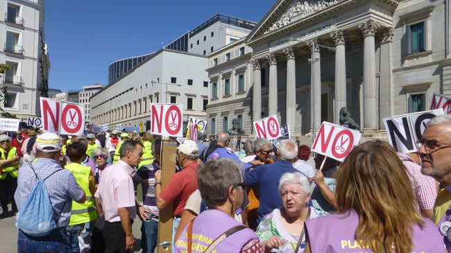 mensen protesteren voor hogere pensioenen, er is geknipt in