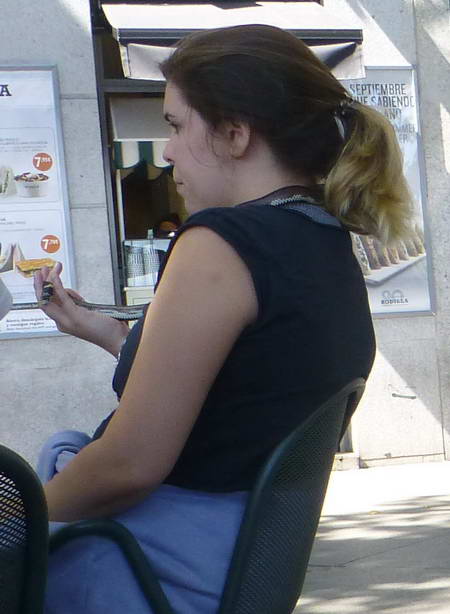 Bibi, een Hollandse die in Madrid woont. Enthousiast vertelt ze honderduit over